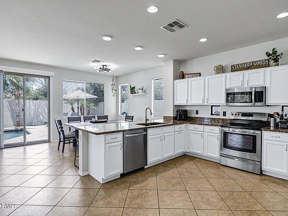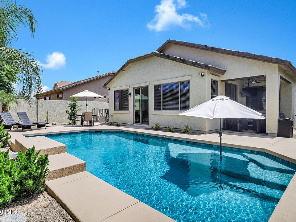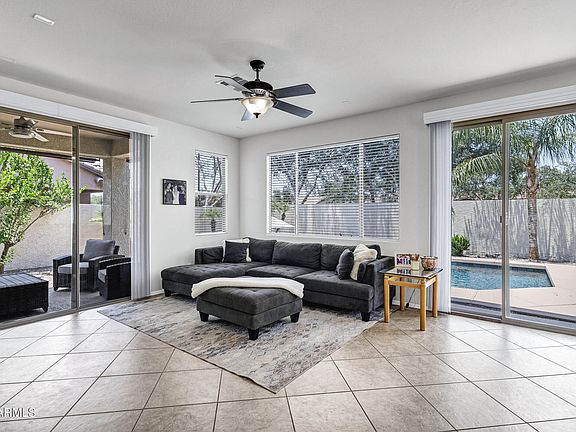 Back on Market—Multiple offers first weekend; buyer unable to close! Inviting single-story with 3 beds, 2 baths, open kitchen with granite counters and ample storage. Spacious primary suite, ensuite bathroom and two closets. Two additional bedrooms provide flexibility for guests, hobbies, or home office. Enjoy indoor/outdoor living with two sliding doors, covered patio, sparkling POOL and no neighbors behind for added privacy. Recently updated A/C and water heater in 2023. Extra deep garage is much larger than typical 2 car garage. Enjoy the nearby Seville community park featuring a playground, basketball court, and expansive lawn—ideal for outdoor fun and relaxation. Optional membership to Seville Golf & Country Club offers access to resort-style amenities including 18-hole golf course.