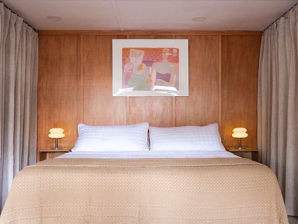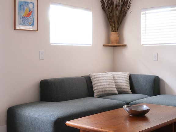 King-size casper bedModern sectionalNewly renovated studioLush backyardShared outdoor areasCovered patioVintage furnishings and art