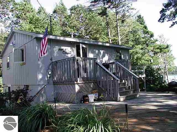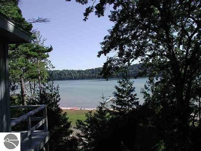 Beautifully wooded parcel features 118 ft private waterfront on Benzie County's Long Lake, secretly tucked in the hills beside Sleeping Bear Dunes National Lakeshore Park. A small year round cottage with fantastic lake views from its elevated perch. Many updates include the kitchen and flooring. Full basement for extra sleeping space. Large deck and a dock for the boat. 2 car garage for storage of the toys. Loons & eagles frequent this quiet lake & a sandy bottom & clear waters provide excellent swimming, paddling & fishing for cottagers. Walk to scenic Park trails for hiking, cross-country skiing or snowshoeing through the woods to Lake Michigan. It's an easy drive to Crystal Lake & Frankfort & Beulah, Loon Lake & the blue-ribbon trout waters of the Platte River. It's magical.