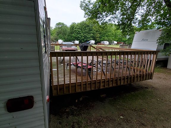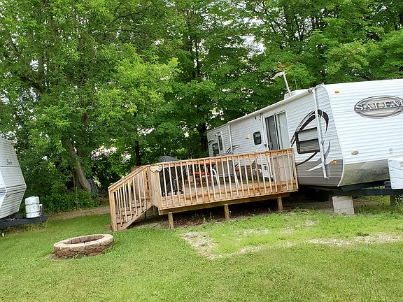 Park closes Sept 29th so that is the last time to see it before May 1st, 2020...Call now for a showing! ****2020 Fees already paid. Be ready next spring to enjoy the full season.**** 2010 Salem Forest River LE BHBS 36ft travel trailer for sale. Trailer is classified as a "Park model". Unit is on permanent site in Jellystone Park in Sturgeon Bay, WI. You only need to bring your toothbrush as pots, pans, dishes, and 2 flat screen TV’s, and all linens are included. Includes tons of other extras. Newer 12ftX24ft deck. Newer canopy covers most of the deck. Storage shed also included. Get it now and enjoy 2020 as annual dues are already paid. Unit has a bunk room for 4, a queen bed in master bedroom, with separate entrance, and sleeping for 4 more in main area. 10 total capacity. There are no property taxes on this property!