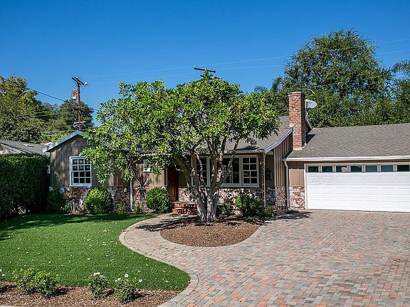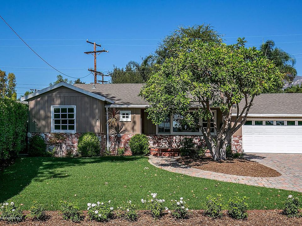 Sparr Heights! This updated one level home is located on a cul-de-sac with convenient walk through to quaint downtown Montrose and its shops and restaurants! La Crescenta schools! Built in 1952, this 2 bedroom home is measured at 1,888 sq ft per REST, on a low maintenance lot of 6,269 sq ft. The newly landscaped front yard with lawn and attractive covered porch and walkway are very inviting. Hardwood floors adorn the living room and family room/dining area. The kitchen is open, allowing the cook to enjoy others as well as the functional layout of the home. Views of the rear yard are seen from the kitchen. There is a breakfast bar in the kitchen and an eating bar in the living room with pass through to the kitchen. The master suite offers a lovely fireplace, walk in closet, French doors to the rear yard and a spacious bath with double sinks, separate tub with spa and shower. The second bedroom has an adjacent full bath which is also conveniently located near the common rooms. The back yard has a large patio area, built in barbecue, sink, fireplace and wood storage. Newly painted and carpeted, additional features include central air conditioning and heating, direct access deep two car garage with sink and storage, and driveway parking.