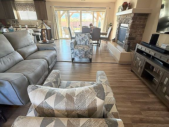 Welcome to 3678 N. Monarch Drive in beautiful Cedar City Utah, a nicely maintained 4-bedroom, 2-bathroom home offering 1,854 sq ft of living space on a quiet street in the sought-after Monarch Meadows Subdivision. Inside, you'll find a spacious open floor plan that combines the living room, kitchen, gas fireplace, and dining room, all while enjoying the captivating view of the mountains behind you. All looks out through a double sliding door that opens to a covered patio and outdoor fire pit. While enjoying your beautifully landscaped backyard you can tend to your flowers in your raised gardens and pick fruit from your own fruit trees. With no neighbors behind you, your full block wall gives you privacy and serenity. Evening brings a partial view of the city lights.