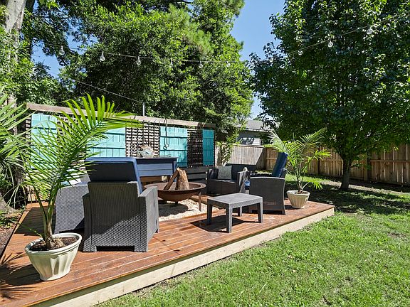 Huge fenced yardWelcoming covered front porchUpdated lightingDeck off the kitchenNeighborhood boat launchOpen floor planKitchen with floating shelves