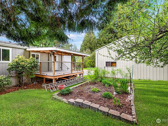 Private and tucked away with a partial bay view on a double lot( lot size is 16,988 square feet.) Newer roof, windows, and siding within the last few years. There is a 24 x 36 detached shop with 2 bays and a separate walled off work space. The yard is beautiful with many flower beds and a garden spot off the back covered deck. The inside of the home has been well maintained. The location is just minutes from Bellingham and Ferndale.