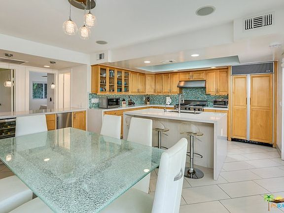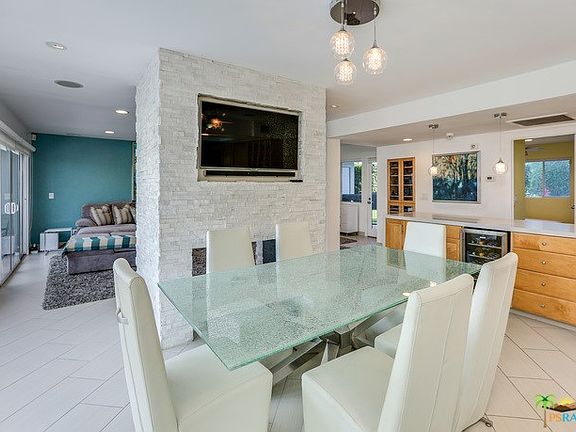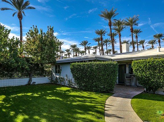 This amazing Mid-Century home is located in Tamarisk Rancho, which has a rich Hollywood history. Tamarisk Rancho is a premium neighborhood located in the heart of suburban Rancho Mirage adjacent to the Tamarisk Country Club. There are two clusters of 16 Mid-Century Modern homes enclosing groomed, park-like green belts with tranquil views of mature fruit trees and date palms that may predate the development. The 45-foot swimming pool at the center of this private oasis in the South cluster was advertised in 1958 as one of the finest in Palm Springs. This Tamarisk North home was built in 1961 featuring large window to bring the fabulous desert lifestyle indoors.