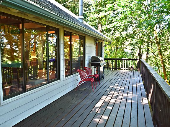 Private and secluded 3 bedroom, 2 bath home on just under 2 acres in a natural wooded setting. Tall timbers allow sunshine in, but keep the home cool during the summer. Brand new wrap-around deck for peaceful enjoyment or entertaining. Finished basement has a pellet stove and can be used as a 4th bedroom/bonus/or family room. Roomy 2 car garage can be used for parking or as a shop. Great