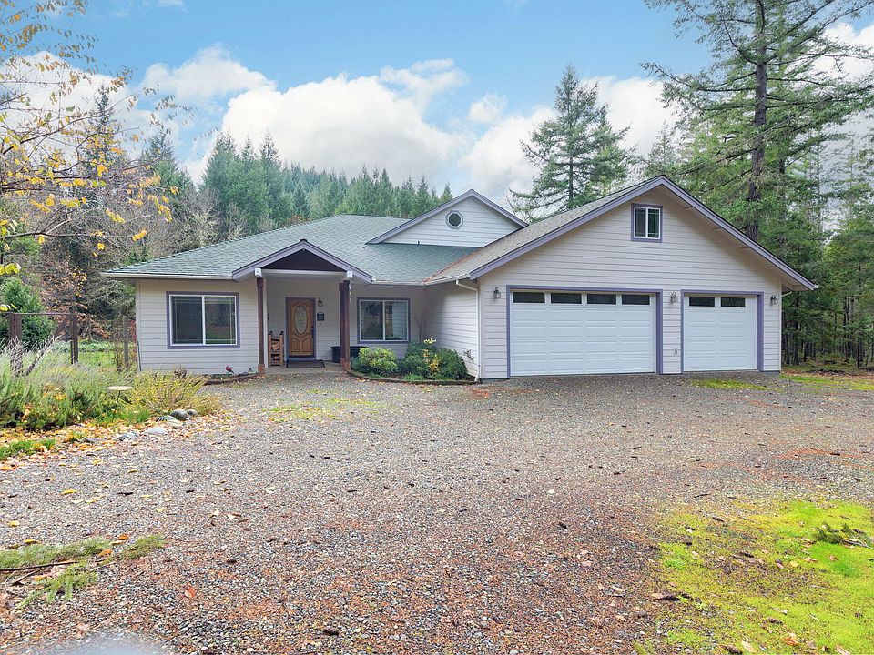 This spacious custom home on over 9 acres across two parcels is ideal for anyone looking for extra room, privacy, and a property with real versatility. From the home's generous layout to the multiple outbuildings, there's space here for projects, equipment, and everyday living. Inside, the home features a large, comfortable floor plan at 2752 square feet with plenty of room to spread out across 3 bedrooms, an office, a bonus room, and a living room that blends into the kitchen beautifully. Outside, enjoy an attached 3-car garage, a large shop, and a deck overlooking the property. A seasonal creek adds a peaceful touch, and the 17,000-watt propane Generac generator provides dependable backup power. Conveniently located about 10 minutes from Cave Junction, do not miss this great opportunity to own a spacious, usable property in a quiet setting.