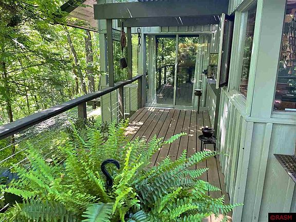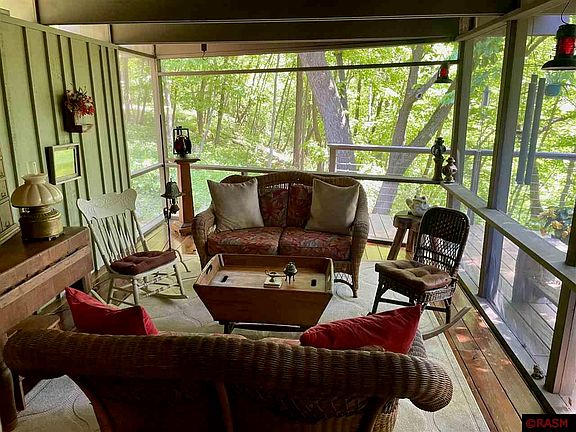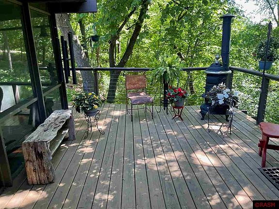 One of the most unique- architecturally designed homes, nestled on over 18 acres. Just a couple of minutes from Saint Peter. It's a wonderful 3 bedroom home with windows everywhere to enjoy the woods, creek, nature and an abundance of wildlife. So many special features- aggregate flooring, wood vaulted ceiling, fabulous Kasota stonewall up and down with built in gas fireplace in the upper level, wood burning fireplace in lower, a wonderful screen porch, 2 exterior decks, large upper level porch. Loft that is currently being used as a bedroom. Another bedroom on main and another on lower level. 2 baths, 5 patio doors in the home, so you can enjoy the beautiful setting anywhere you're at. You can certainly see this is a one of a kind home. Designed for someone who values a serene environment and a unique quality home.