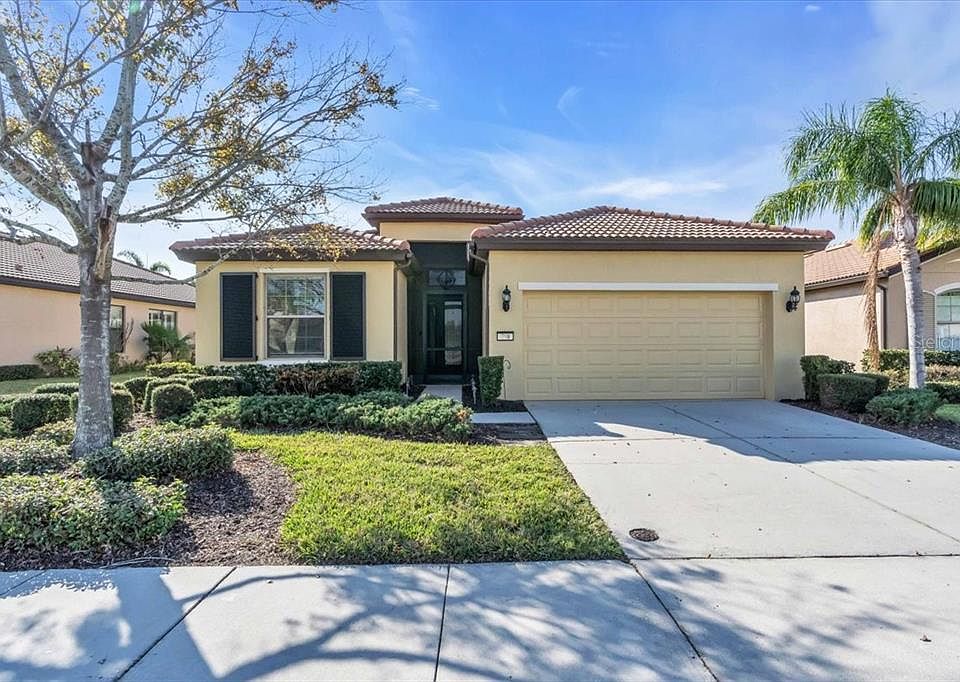 Welcome Home to this amazing 4-bedroom, 2-bath LAKEVIEW 2013-built home featuring an oversized lanai with Travertine pavers, Kevlar hurricane motorized screens, dual fans and a spa! The serenity this home offers is truly one-of-a-kind in Del Webb's 55+ amenity rich community of Southshore Falls. This custom built, single-owner home sets itself apart from any other, with crown molding, 6-in baseboards, granite countertops, wooden cabinetry with crown molding, ceramic tile flooring, luxury vinyl and carpet in the bedrooms, travertine pavers in the front entryway and back lanai. The grand entry with the guest quarters on the front of the home, a completely separate dining room and living room, which makes the most space for entertaining any home could provide. The Primary En Suite even has the 4th bedroom access through the bathroom, which is a unique feature! Enjoy all the rich amenities of Southshore Falls, including maintenance-free living and a 24/7 guard gated entrance. Lets not forget about the 14,000sqft Clubhouse featuring the lagoon pool with beach access, resistance pools, walking trails, billards, tennis courts, bocce, pickleball courts, fitness center, internet cafe and an abundance of events planned on a monthly basis (on site). Southshore Falls is an Active and Social 55+ community with a LOW HOA fee ($341 a month). Schedule your showing today! This one will not last! Priced to sell!