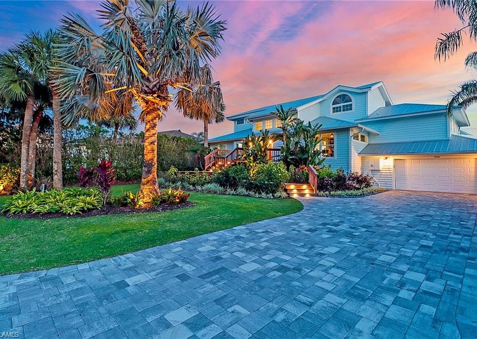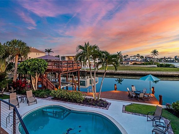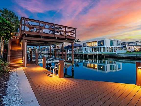 Live the ultimate Naples waterfront lifestyle in this stunning coastal contemporary elevated pool home perfectly positioned at the end of a quiet cul-de-sac in Vanderbilt Beach. With preferred southern and westerly panoramic bay views from this oversized lot capturing the essence of elegant coastal living with spectacular sunsets. Step inside and be captivated by the light-filled open layout, soaring ceilings with designer wood beams, and expansive water views from nearly every room. The gourmet kitchen has custom cabinetry with quartz tops, 2 SubZero freezer drawers in the butlers pantry and professional-grade appliances, 80-bottle wine cooler, a dream for any chef. Spacious 3 bedrooms + den/office and 4.5 baths, including two primary suites one on each level. Each bedroom is ensuite, with a new main-level owner’s suite and spa-style bath. The upper-level suite features a private balcony overlooking the bay, perfect for morning coffee or evening sunsets. Or Consider repurposing the upstairs second owner’s suit into a multiple bed dorm area for kids or grandkids to have as their own sanctuary. Enjoy your private resort-style oasis complete with a heated pool, fire pit, lush tropical landscaping, and dramatic lighting. The grandfathered-in covered boathouse complete with 15,000 lb lift with an upper observation deck is truly one of a kind—ideal for entertaining, dining under the stars, or simply taking in breathtaking views of the wide bay. The climate-controlled two-car garage includes custom cabinetry, a sink, refrigerator and additional storage. All living areas are elevated above flood levels, with water-resistant finishes for peace of mind. This is more than a home—it’s a lifestyle. Walk or bike to white sugar sand Beach, The Ritz, LaPlaya, Turtle Club, and Mercato for world-class plethora of dining and shopping. Watch the dolphins play, the pelicans glide, and sunsets light up the bay. The ultimate in boating from your own backyard. Home could be offered turnkey furnished.