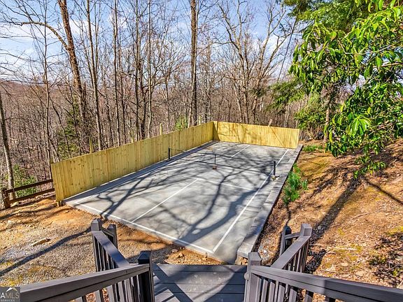 YOUR DREAM MOUNTAIN LAKE RETREAT AWAITS! Just added a new PICKLE BALL COURT on property! Breathtaking lake and mountain views surround this stunning rustic cabin, inspired by traditional Italian architecture and designed for year-round beauty and relaxation. Whether you're sipping coffee on the expansive upper deck or unwinding on the cozy lower deck, every angle offers a spectacular backdrop of nature's finest. Step inside to a grand open living space, where a charming wood-burning fireplace sets the perfect ambiance. The chef's kitchen is fully updated with stainless steel appliances, sleek granite countertops, a wine fridge, and a spacious walk-in pantry-ideal for entertaining. The main-level master suite is a private oasis, offering direct access to the deck with breathtaking lake and mountain views. Indulge in the spa-like master bath featuring a soaking tub, beautifully tiled shower, double vanities, and luxurious HEATED FLOORS. Upstairs, a private loft bedroom and en-suite bath create a serene escape, while the finished basement boasts two additional bedrooms, a full bath, and plenty of storage. Every detail has been thoughtfully upgraded, including a brand-new hot tub, new HVAC system, upgraded well equipment and plumbing, plus a freshly painted home and deck. Located just 10 minutes from downtown Blue Ridge, this cabin is SOLD FULLY FURNISHED AND TURNKEY, making it perfect as a luxury getaway or an income-producing rental with a strong rental history. This is more than a cabin-it's an experience. Don't miss your chance to own this mountain-lake paradise!