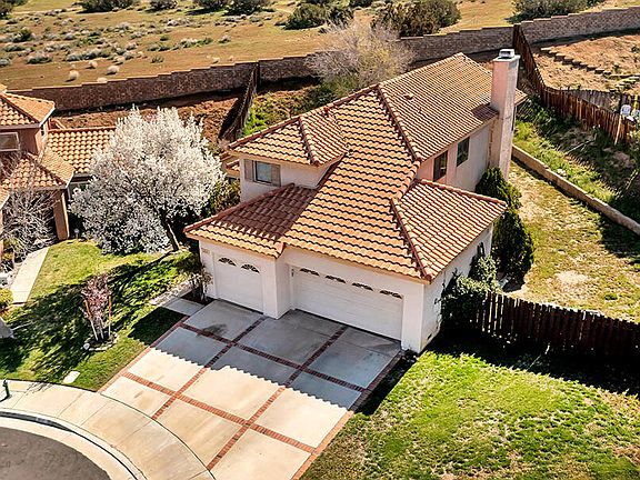 Welcome to this Beautiful West Palmdale home. This home is located in a great neighborhood Cul-De-Sac . Enter into bliss as light radiates through multitudes of windows illuminating the laminate & all new carpet throughout. Step into the bright spacious living room and formal dinning area with direct access to backyard with sliding glass doors. The kitchen displays an abundance of cabinetry & breakfast nook perfect for sipping on your morning coffee. Kitchen overlooks family room with a brick fire place and additional access to the backyard. Be relaxed in the downstairs bedroom perfect for guests or office space. Convenient hallway bathroom has shower/tub combo. Venture upstairs to the primary bedroom with an ensuite complemented with standing shower, large soaking tub, walk in closet, & double sink vanity. Discover two more bedrooms with ceiling fan/light combos and large closets. Hallway bathroom upstairs has shower/tub combo. Enjoy the vast backyard perfect for entertaining.