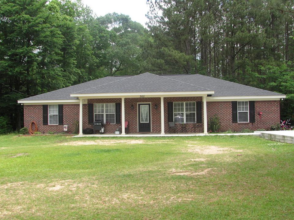 Great home in the country !! For Sale or Rent. This brick 4 bedroom 2 bath home has plenty of space. Enjoy a large den with vaulted ceiling. Dining Room and Nice kitchen with stained cabinets and stainless appliances. Large Master Bedroom with tray ceiling and office area. Large Master Bath with garden tub, double shower, and walk in closet. Concrete area out front with walk way. Covered front porch. Shed for storing equipment and wooded land. House has security system and wired for internet.