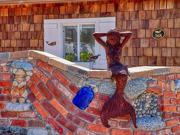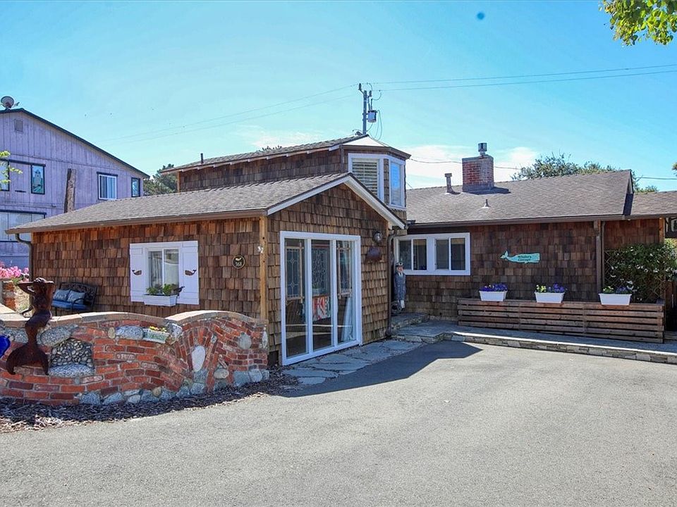 Cambria meets Cape Cod in this quaint, cute New England-style cottage! This 1,516 square foot SINGLE LEVEL home is located just three blocks from the boardwalk at Moonstone Beach and the ocean. This super clean home has an open floor plan and original hardwood flooring throughout much of the house. The current owners have made several updates, including a brand new BEAUTIFUL kitchen with stainless steel appliances and soft close cabinetry. The detailed woodworking can be seen throughout the house, particularly in the living room, with a huge built-in bookcase and fireplace mantle. Make sure you spend a minute staring over the top of the Dutch door out towards the Pacific Ocean. One of the best parts is not inside, but outside! This ocean view charmer includes two lots to the rear, which are meticulously cared for, offering multiple sitting areas, two TuffSheds, a bocce ball court and RV/boat parking. The front of the house has a whimsical new custom stone wall. The inside of the house has an extremely private feel, aided by vacant lots on all three sides.