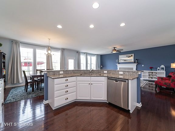 This remarkable "like new" home is the coveted "Extended Parker Manor" model. Engineered hardwoods in foyer, kitchen and family room, recessed lighting, 9' ceilings on all 3 floors, extended granite island kitchen with stainless appliances, extended option family room with fireplace, huge laundry/mudroom w/wash basin, gigantic finished 460SF tandem (aux) room off MSTR could be media, hobby, exercise rm or office. Home has "todays color palette" throughout, large BRs (2 w/walk-in closets), 3 car tandem garage, & provision for bathroom in basement. Gigantic $11k rear patio just installed w/hi-quality stamped brick pavers for your entertaining pleasure. Extra large & convenient laundry/mudroom, can lights and ceiling fans throughout and so many upgrades ($80k worth) The 9' deep pour basement could add an amazing personalized dimension to this already unique residence. Located in the premier neighborhood of Bowes Creek CC and this home is in SCHOOL DIST 301! Bring on a reasonable offer - sellers motivated!