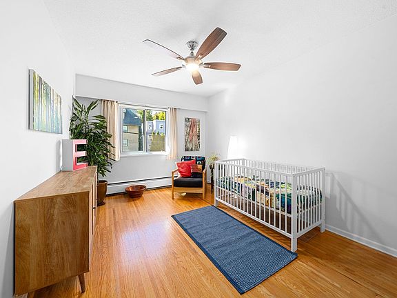 Top-floor corner retreatSleek updated kitchenQuartz countersStainless appliancesCustom cabinetryRe-finished parquet hardwood floorsOpen layout