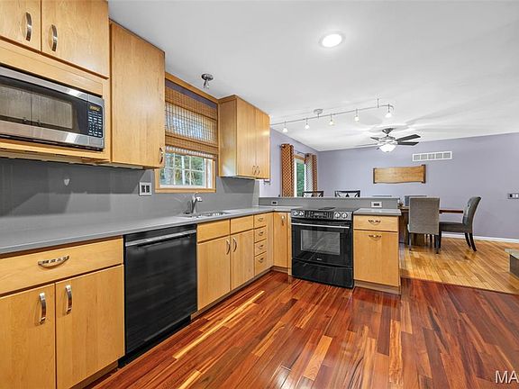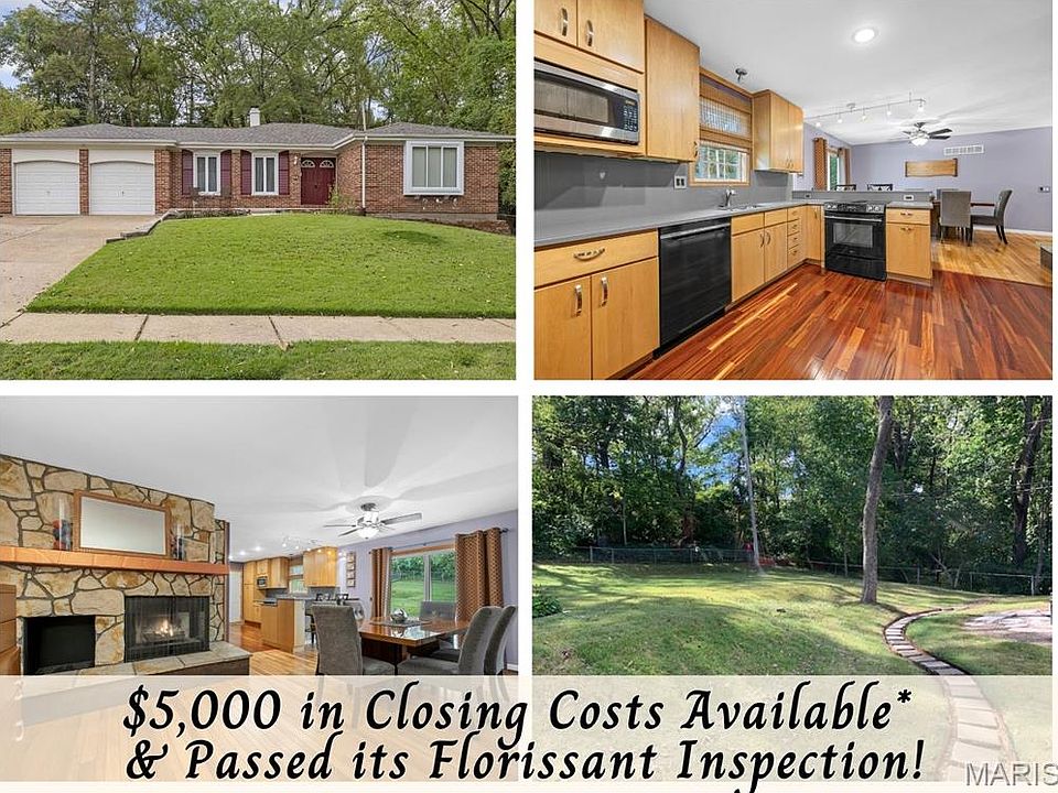 OpenHouse, Sun. Oct 5th, 1-3pm. Pride of ownership shines in this 3Bedrm, 2Bath 1463 sqft Ranch Home with present owner loving & improving this home for past 35 years. Amazing sleek & modern kitchen w/42" cabinets w/Rollouts, Silestone counters & backsplash, Jennaire electric cooktop & built-in Jennaire refrigerator stays,Undermount Stainless Sink, Whirlpool D/W & built-in Micro. Home is the last one on the street & located at the back of subdivision (limited vehicle access) Amazing .30/acre size lot, fully fenced backyard~private w/back & sides to heavy trees! Gorgeous hardwood floors, updated w/6 panel doors. Primary BedRm w/Window Seat, Private Bath & 2 Closets. Lovely foyer area w/ Double Door Entry & large entry closet leads spacious livingrm plus Kitchen has Breakfast Bar & Dining Space w/stone fireplace for a hearthroom type arrangement. Andersen slider looks out onto backyard to enjoy watching the woodland animals. Roof new in 11/24, entire HVAC system new 3/21, new HotWater Heater & Main plumbing Stack 3/2021. Zero carpet in this home - all Hardwood or ceramic tile. Sump pump w/ Internal Basement drain w/drain tile installed in 9/2025 for new owner's peace of mind. No worries here for immediately moving in;home has already passed its City of Florissant Occupancy Inspection! Basement is clean & open with one finished room as an Office or SleepingRm & Washer/Dryer are also being included. This home is super clean & available for closing after Oct 28th. Don't forget to ask about how you can qualify for $5,000.00 in closing cost credit thru Guild Mortgage "Gateway to Homeownership Program". What more could you Want? Hurry to make this home yours today!