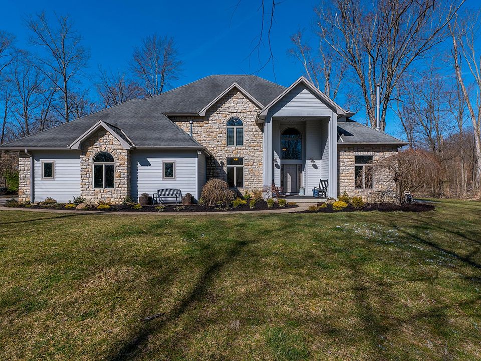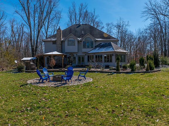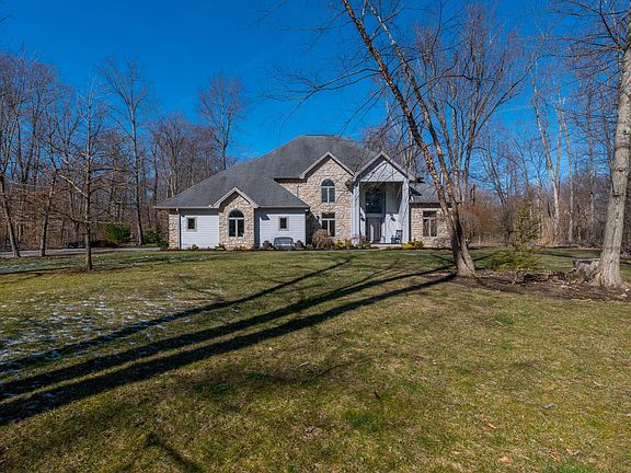 Wonderful 4BR/5BA 2 Story Custom home in Olentangy schools on gorgeous almost 4 ACRE lot! All the privacy you could want yet minutes from commuter routes, shopping, restaurants & more! Soaring 2 story entry, Light & bright kitchen w/center island & walls of windows in large eat-in area to enjoy the backyard views open to great room w/stone fireplace. Formal dining rm & 1st flr office or formal Liv Rm w/wood burning stove. Lots of fresh paint throughout, Owners suite w/unique in-room office , BR 2 has en-suite bath, BR's 3 & 4 feature jack & jill bath, Large basement offers Rec room plus addtl rooms great for more BR's or yoga/gym & storage. 1st flr laundry + hook up for stackable upstairs .Backyard oasis with paver patio, pergola, built-in grill & firepit area. 6 car tandem attached gar