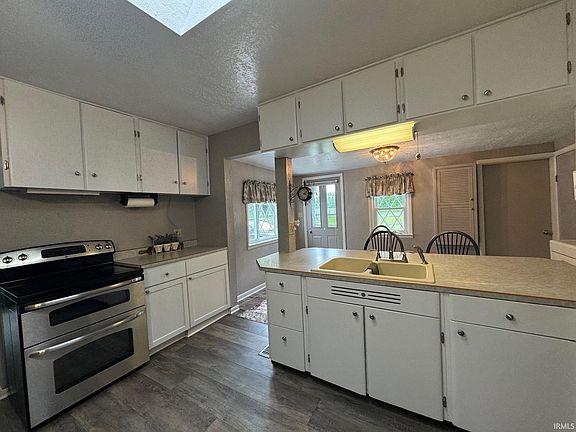 All the storage you will ever need awaits at this charming 4 BR, 2 BA country home! Boasting a partially heated 4 car garage with tremendous built in cabinetry for tools and 4 storage sheds, so your hobbies will have space. The heart of the home is a spacious kitchen with breakfast bar and lots of counterspace and cabinetry. The interior features a great layout with 3 bedrooms on one side incluidng ensuite bath, dual sinks and walk in shower, plus a large great room. Another bonus is a potential in law space on the opposite end of the house with separate exterior entrance, family room, bedroom with closet and independent heating/cooling. The septic was last pumped in 2023, the majority of the windows are vinyl replacement, foam insulation was added in the crawlspace along with a new vapor barrier and pea gravel in the last 3-5 years. Cash or Conventional loans only.