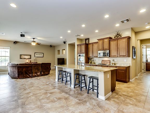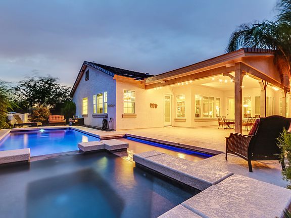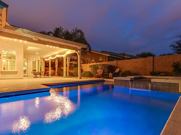 Beautifully upgraded single level Ashton Woods home in highly desired Lakeview Trails at Morrison Ranch. You'll enjoy the spacious upgraded kitchen, with granite countertops, plenty of storage and prep space. The master bedroom will accommodate a king sized bedroom collection and has a spa-like master bathroom. The master bedroom offers direct access to the resort-like backyard! The extended patio is perfect for entertaining or simply relaxing with family and friends. Backyard amenities include custom built pool with spa and waterfall feature; professionally landscaped. House recently painted outside. White picket fences, green grass, and walking distance to a catch and release lake. Plus you'll have quick access to dining, shopping, and freeway access. Top rated school district.