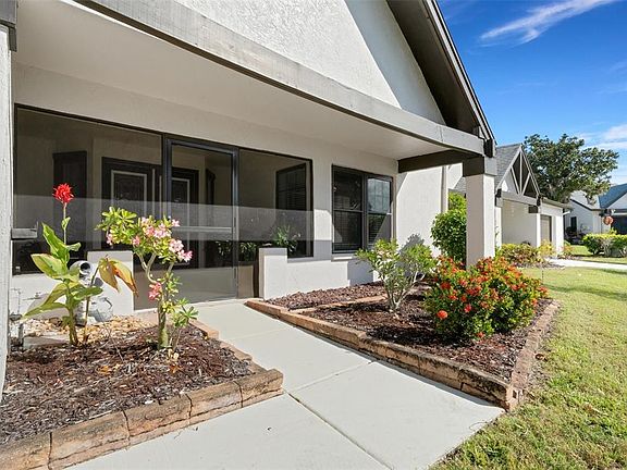 BRAND NEW ROOF in 2025 and located in Palm Harbor’s premier 55+ active adult community! Enjoy carefree living in this delightful 2-bedroom, 2-bathroom Villa situated in the sought-after community of Sutton Court. A maintenance-free lifestyle in a non-flood, non-evacuation zone—with no special assessments and peace of mind built right in. From the moment you enter through the double-leaded glass front doors, you're welcomed into a bright, open-concept living and dining area. The EAT IN kitchen is conveniently located off the garage, keeping you safely out of the weather. The spacious master suite is a private retreat with a large WALK closet plus an en-suite bathroom with a step-in shower with a built-in bench. The generous second bedroom is conveniently located near the hall bath, is perfect for guests or as a second master, which also features a Large WALK closet. The LOW HOA fee of $164 entitles you to GOLF with NO green fees on 3 executive courses with Par 4s, RV and Boat storage, tennis/PICKLEBALL, Ceramics, Stained glass, and a FULL Woodworking workshop, TWO Heated Pools, Bingo, Cards, Shows, and a Club for just about everything. Be as Busy as you want to be. Highland Lakes, where Retirement, Relaxation and Recreation come together in the superb community of Highland Lakes - 86 feet above Sea Level/non evactuation zone!