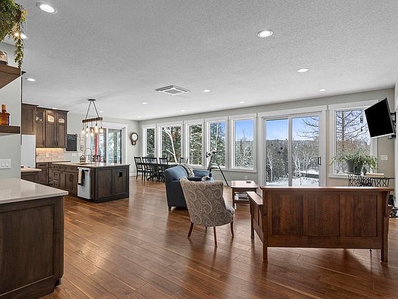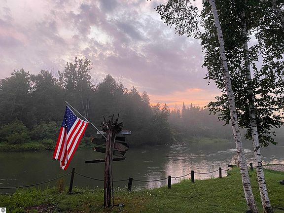 161’ MANISTEE RIVER FRONTAGE is the setting for this newly built modern home. With over 1684 sq. ft of well-appointed one floor living space with picturesque views and high-end amenities. The spacious great room features generously sized windows and sliders leading you to the patio perfect for seamless entertaining inside and out. The chef in your family will delight in the kitchen with gorgeous custom cabinetry; professional GE Cafe white appliances with bronze accents; island with seating; beverage bar; quartz countertops; large walk-in pantry with extra cabinetry, workspace and sink. Wake up to views of your piece of river paradise from the primary suite with picturesque windows; luxurious bathroom with soaking tub, separate tiled shower and granite countertops plus a generously sized walk-in closet with thoughtfully designed built-ins. Sunroom/three season room with Alder wood on ceiling and walls for a yoga/exercise room or use for guest overflow in the summer. Relax on the covered front porch while enjoying the extensive landscaping and wooded setting. This quality-built home is also highlighted by radiant in floor heat; 2 bedrooms, 1 ¾ baths; large mud/laundry room combination; central air; covered front porch; low maintenance custom metal exterior; 2-car garage with heated floors; Generac Generator. The 30’ x 40’ insulated auxiliary building will be great for storing all your toys or use as a workshop for your hobbies. A wonderful year around home or getaway retreat, the location is great for exploring all of northern Michigan. One of northern Michigan’s premier Rivers, the Manistee, this will be your place to rest, relax and rejuvenate. Get ready to kayak or boat for miles right from your back yard! If fishing is in your future, you will discover superior trout fishing close by at the Buttermilk Creek and Silver Creek trout streams. Imagine watching the sunset while the mist rises over the river in this serene, one-of-a-kind setting.