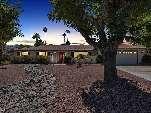 Vintage Vegas charm in the secret garden of Paradise Crest, home to the iconic Hammargren House. A true community where your postal carrier still delivers mail door-to-door. Mature trees line the streets leading you to parks. This mission-style home, on a 14,375 lot, offers features nearly impossible to find. Enjoy a swimming pool w/ diving board, RV parking, & unique wood-burning fireplace that adds character. The stunning backyard is your private oasis, perfect for entertaining w/ solar-heated pool, low-maintenance landscaping, & cozy fire pit for creating new memories with your guests. Step inside to discover spacious rooms filled with natural light, complemented by tumbled travertine tile. This classic beauty is enhanced by the modern convenience of a garage w/ a 240-volt outlet! An evaporative cooling system makes the 2.5 car garage a joy for hobbyists. Enjoy all of this in a neighbourhood where pride of ownership governs itself w/o an HOA. NO septic = no potential mandate costs!