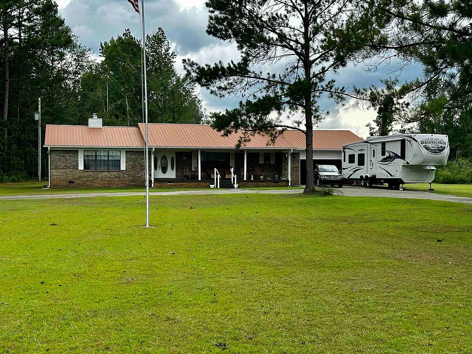 Immaculate, spacious home located on a lovely level 2.5 acre lot in the Long Creek area outside of Georgiana. The brick ranch-style home as a large porch across the front for rocking and visiting. Built in 1990, the home is light and bright, and open. A large wood-burning fireplace with a lovely mantle surround is the focal point in the living room. The kitchen is spacious and has new appliances, and is open to a large space that could be used as a dining room or keeping room. An office offers a nice space for working from home. All three bedrooms are huge, and the bathrooms are amazing. The master bath has a large jetted tub that works great. HVAC is only approx. three years old. Metal roof and a new gutter system. A large attached double garage gives you plenty of room for your pickup truck. There is a nice heated and cooled laundry with a half bath off of the garage. The back yard has a big storage shed with a cement foundation for your tools and garden supplies.