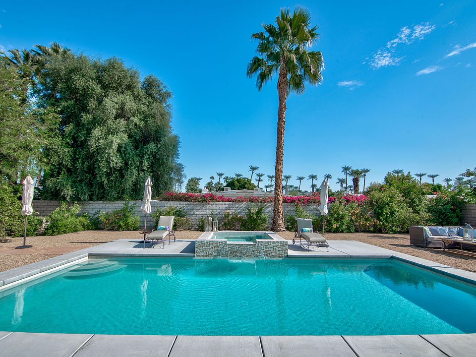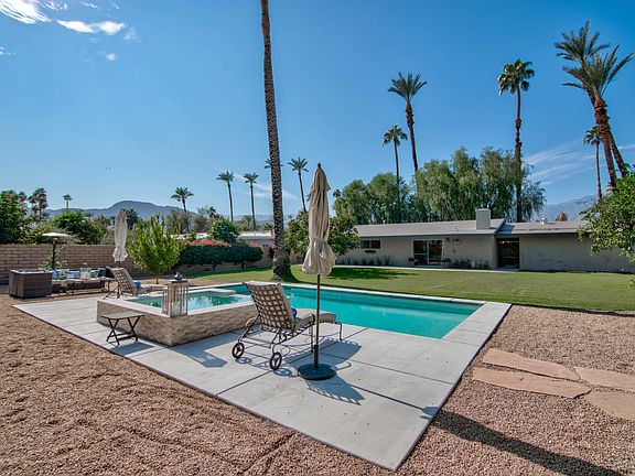 Are you looking for a well-maintained MID-CENTURY home located on nearly ONE-THIRD OF AN ACRE in a premier Rancho Mirage neighborhood that offers recent upgrades and a LARGE ULTRA-PRIVATE BACKYARD complete with PRIVATE POOL AND SPA, mature palms and MOUNTAIN VIEWS! Located within minutes to multiple golf courses, restaurants, retailers and entertainment venues, too! Ultra-private front yard with outdoor seating and mature trees; front entry that opens to the dining and living area complete with gas fireplace; and a sliding glass door that opens to the large backyard. Adjacent kitchen has views, stainless appliances including a gas range and a door that leads to the covered breezeway that connects to the attached two car garage as well as the backyard. Master Bedroom has a private bath with a walk-in shower. Bedrooms Two and Three have easy access to the hallway bath that includes a shower/tub. Recent improvements in the last 5 year include new HVAC system, plumbing system, tankless water heater, stainless appliance suite and gas line for future outdoor built-in BBQ. NO monthly HOA fees either!