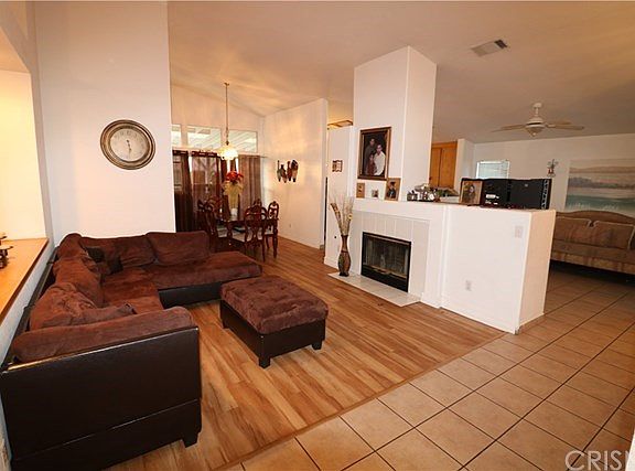 Great Neighborhood! Spacious home located on a nice pocket area of Palmdale, it features an open floor plan with high ceilings, a nice living room with a dual face fireplace, dining room, family room, spacious kitchen with tile counter tops and plenty of cabinet space, breakfast nook, Spacious bedrooms, tile floors, laminated floors, central A/C and Heat unit, spanish tile roof, 2 car garage, etc... Great location, just minutes from highways. Schedule your showing today!!
