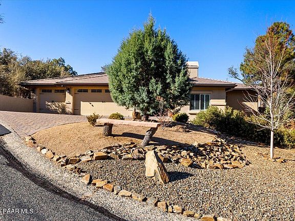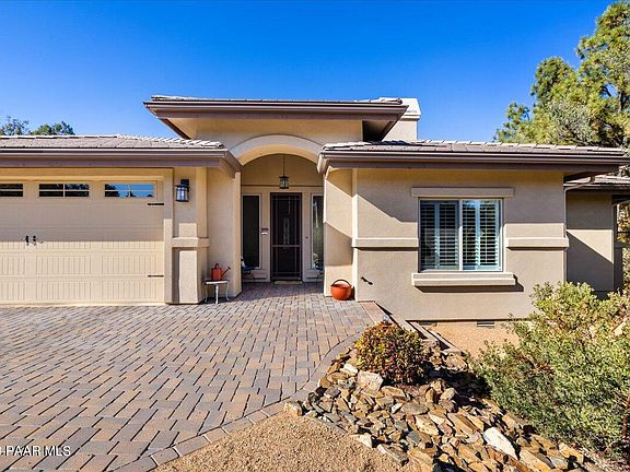 Discover the epitome of comfort and style! Boasting 3 beds, 2.5 baths, and a 3-car garage, this residence is a perfect blend of convenience and luxury. The master bedroom is a private haven with its own patio and spacious walk-in closet. Some accents are new blinds and new security doors, while the kitchen delights with high countertops and a huge pantry for easy organization. The plantation shutters and designer blinds balance natural light and privacy. The guest bedroom comes with a charming balcony looking right over the creek and woods that border the property. Perfect for enjoying Prescott's scenic views and a gas fireplace, making it perfect for cozy gatherings. This home is not just a dwelling; it's a retreat. Don't miss the chance to call this impeccable residence yours!