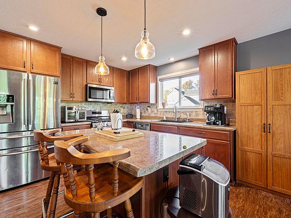 This meticulously maintained 3 bedroom ranch home on a premium wooded corner lot offers a full professionally finished basement and an impressive list of upgrades throughout. The main level has been freshly painted and features custom window treatments, a built-in alarm system with exterior cameras, and an updated kitchen with a tile backsplash, crown molding, a large single sink with a sensor-controlled faucet, and a gas stove. The primary bathroom includes a custom glass shower enclosure, and Hunter ceiling fans have been installed in 6 rooms for added comfort. The professionally finished Owens Corning basement provides a 4th bedroom, a half bath, and a large storage area with custom shelving. Outside, the property has been professionally landscaped and maintained with TruGreen lawn treatments and a Greenix insect control program. A fully fenced backyard includes a custom 10' x 14' outbuilding with electricity and a generator, a 16' x 25' paver patio with fire-pit, and a natural gas line hook-up for a grill. Additional exterior updates include a new front door, screen doors on front and back entrances, insulated and drywalled garage, and remote exterior holiday and security lighting. Mechanical improvements include a natural gas on-demand water heater, whole-house water filtration and softener system with 2025 filters, a whole-house humidifier, sump pump with battery back-up, new taller toilets, a built-in radon mitigation system, and a Wi-Fi-enabled garage door opener with battery back-up. The Atlas Butler HVAC system is covered under a maintenance program, providing peace of mind for future owners. With meticulous updates inside and out, this move-in ready property combines modern convenience, thoughtful details, and lasting quality. The majority of the house has plank flooring with some vinyl and carpet. See Agent to Agent remarks for a list of items that do and do not convey.