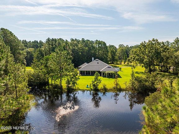 Nearly 14 acres of private living with a stocked pond and indoor pool await in this stunning 4-bedroom, 2.5-bath home spanning over 3,000 sqft. Designed for both comfort and entertaining, it features a spacious open floor plan, a chef's kitchen with a gas cooktop and oversized island, and a cozy stone fireplace as the centerpiece. The master suite offers a spa-like retreat with an upgraded bathroom and a shower that doubles as a steam room. Wood flooring runs throughout the home—no carpet—while a large screened patio extends your living space outdoors. Recent updates include a brand new roof and skylights, HVAC, water heater, and pool equipment (all just 7 years old). A powered shed adds convenience, and the fully stocked pond makes for the perfect escape. Combining luxury, space, and function, this property delivers the best of indoor comfort and outdoor lifestyle.