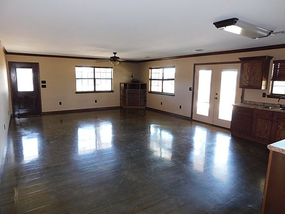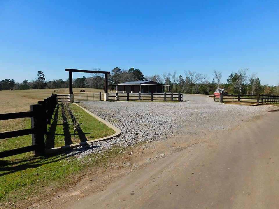 This Diamond in the rough is a must see if you're looking for 5 acres of land close to Sam Rayburn and minutes from Lufkin. Completely fenced, Large 2/2.5 Barndominium, with 14' eve height, 2- 13' x 14' coil up doors, 2,200 SF shop, 1,640 SF office, 20' deep cover porch area on three sides, pull through access, built in cabinets, walk in closets, on demand gas water heater, 200 amp service, underground power, 36,000SF rock parking area, gated entrance, stained and scored concrete, beautiful view, Too many amenities to list.