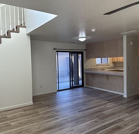 2 bedroom 2.5 bath townhome with approx. 1150 SQ FT. of living space. Kitchen with tile counter tops, dishwasher, disposal and electric range. Both upstairs bedrooms have their own bathroom with a shower over tub combo! Living room with fireplace. Inside laundry room. 2 car garage with opener. Fenced backyard with a covered patio. New laminate flooring and paint! Walking distance to CSUS and shopping. Water, sewer and garbage paid.