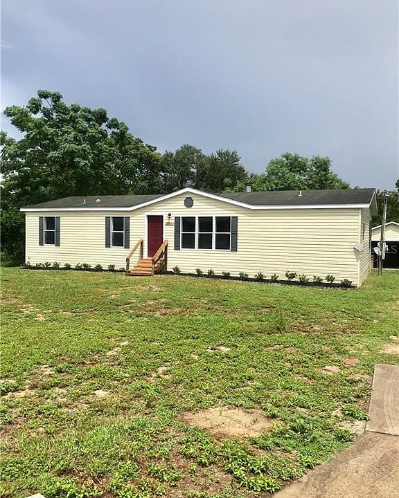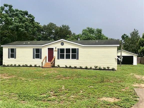 THREE bedroom TWO bath MOBILE HOME located in Fruitland Park! This home has an OVERSIZED family room complete with a WOOD BURNING STONE fireplace and new carpet. The KITCHEN is just off the living room and has NEW STAINLESS STEEL APPLIANCES! The floor plan is split and OPEN for a very spacious feel! New CARPET throughout and NEW exterior and interior PAINT! ENJOY the back screened porch after a long day! The property measure over a quarter of an acre and has a detached two car garage/workshop for the HOBBY of your choice. Come see this great home TODAY!