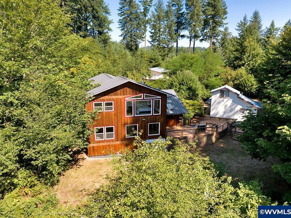 Remodeled down to studs, this private sanctuary was lovingly updated as a forever home w/high quality systems & finishes. Great for entertaining, it features an expansive view & stunning primary suite BA. 3000sf+ of finished space, it boasts multiple buildings: vaulted guest cottage w/full BA; studio office w/ wisteria pergola; large shop w/220V & H2O; & greenhouse. Sustainable amenities abound w/solar & 5000gal water reclamation. Miles of trails on abutting Starker Forests’ land. Scenic 30min drive to OSU. * Extremely private 4.66 acres, zoned Rural Residential 2 acre min* Bordered by Starker Forest land to the north and west with miles of excellent hiking & mountain biking trails* Bountiful garden and orchard, plus excellent foraging for berries, mushrooms and other gourmet wild edibles right out the front door, both on the property and in the adjacent Starker Forests land * Home originally built by a pillar of the local organic food movement, who helped start the Corvallis First Alternative Co-op* Former owners kept a pony; there is room for a horse or pasture animals with some minor clearing* Nice neighbors and a great community. A pleasant country stroll to the Summit Grange Hall with great local bands and the annual Summit Summerfest* Beautiful 20min drive to downtown Philomath, or only 30min to OSU’s campusQuality and efficiency:* Recently remodeled down to its studs as their forever home, high-quality systems and finishes were chosen throughout * Two solar arrays make this property almost power neutral; only about $10 per month for electricity* Long-life steel roofs, recently re-sided, extra insulated, high-efficiency hot water radiant floor heat under the extra thick white oak engineered hardwood floors* Excellent for telecommuting with high-speed internet, and 1GB fiber construction already underway Outbuildings: * Multiple options for office, art studio, yoga studio, writer’s getaway, play areas and guests* Guest Cottage with loft bedroom, kitchenette, and large custom vaulted bathroom* Shop is 38’ x 24’ with large section behind double doors that was previously used as a sewing room and is plumbed with a full sink, plus the 38’ x 14’ carport is great for parking and storage* Detached office with a wall of bookshelves and its own peaceful deck with wisteria covered pergola * Green house is set up for propagation with automatic heat regulators, fans, auto irrigation sprayers and summer shade clothes * Chicken & duck coops and so much more