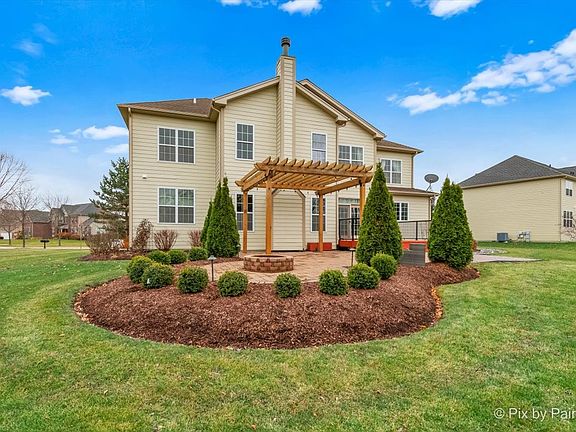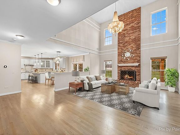 Beautiful home with an open floor plan located in desirable Bowes Creek Country Club. Gorgeous eat-in kitchen featuring a large island, breakfast bar, crown molding, granite, stainless steel appliances and walk in pantry. 2-Story family room with floor to ceiling brick fireplace. First floor den with double French door entry and built in book shelves. Formal dining room with chair rail and crown molding. Master suite offers a sitting room, columns, 3 walk in closets w/designer organizers, make up area and double door entry. Luxury Master bath with it's own thermostat. Princess suite with private bath. Full finished basement with full bath, theatre room, custom bar, 2 wine refrigerators and recreation area. Hardwood flooring throughout the main floor. 2-Story foyer. Brick front exterior. Yard features trellis, custom patio and deck. Subdivision offers golf course, clubhouse, parks and walking trails. Burling school district 301. Playset included. You will be impressed!