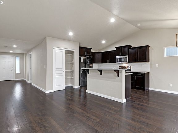 Single level home and less than 5 min. drive to schools, Fred Meyer, restaurants & more. Light & Bright open-concept w/ vaulted ceilings, engineered hardwood floors & ceiling fans throughout. The kitchen features quartz countertops, stainless steel appliances, built-in microwave, pantry and an inviting eating bar. Primary bed has vaulted ceilings, two walk-in closets, and a bath w/ dual sinks. Separate laundry room w/ shelving. Covered back patio w/ recessed lighting. Fenced backyard and room for furry friends to play.
