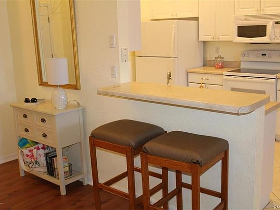 Nice fully furnished condo in the center of Spring Hill, close to shopping and all amenities. Well maintained, open floor plan, wood flooring, outside sitting area, spacious kitchen and breakfast nook, large great room; two bedrooms one carpeted and one with tiled floor, one car garage and one designated parking space outside. Home is handicap modified. Fully furnished. NOT a 55 plus community. HOA dues take care of ground maintenance, outside paint and roof repairs.
