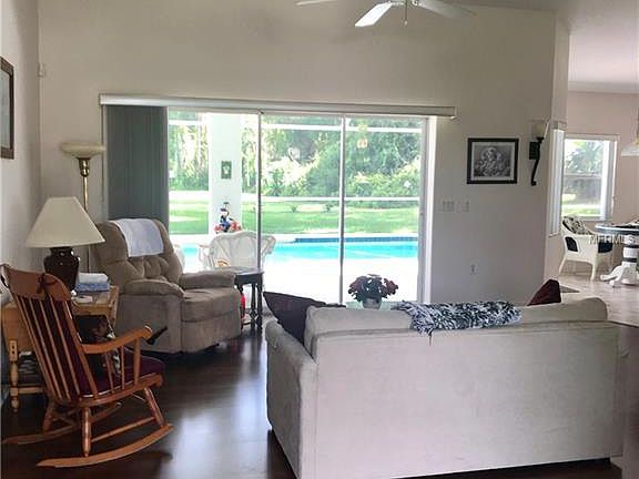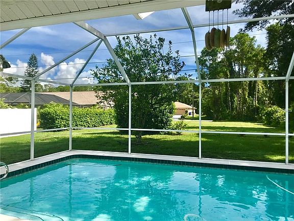 Don't miss this impeccably maintained ONE OWNER 3/2 POOL home!! NEW ROOF (2017), ***CITY WATER*** HURRICANE PROTECTION ! This well loved home is situated on a quiet street and nicely landscaped home site. This ANDREA 1 floor plan at just under 1800 SQ FT features a "Open Concept" great room with rich laminate flooring (2016) cathedral ceilings and cascading triple sliders to the lanai and pool area, a split bedroom layout with 2 nicely sized guest bedrooms both with fabulous walk in closets a full guest bath (with door to pool), The master is spacious at 12x23 with nice sitting area & sliders to the lanai, 2 walk-in closets and an ensuite bath with dual sinks & jetted spa tub. The kitchen is light and bright with breakfast nook and easy access to dining area. Interior color pallet is neutral and easy to adapt to any design preference. This home iwell suited for easy laid back living and entertaining alike. Great pool and extended screened lanai and nice privacy with no home to the back or right side. Bonus extras include: Exterior paint (2014), pool cage rescreen (2013), water softener and security system, 50 gallon water heater (2014)