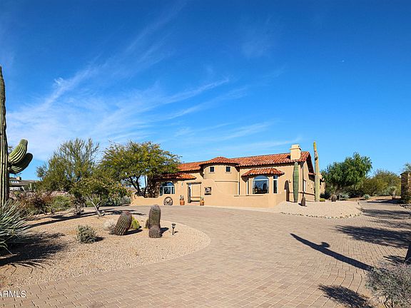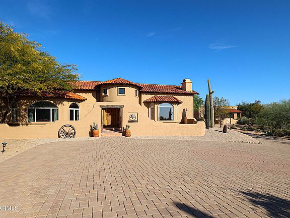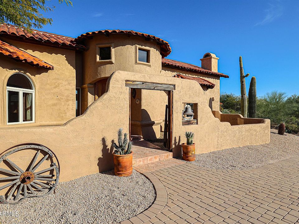 WELCOME to the most charming Carefree Hacienda you will ever see! Five sets of double glass doors lead to the quaint interior courtyard with a tile roof overhang. The main home has a total of 6 car garages (1 is an RV garage) for a total of 7 garage spaces on property (1 at casita). First time builder, owners home has been on the market. This is a concrete form post & beam-type building process using Thermo-Block polyurethane interlocking blocks filled with steel studs, rebar & cement for all exterior walls which provides R38 insulating value. Dual-pane Low-E vinyl windows. High ceilings in main living areas, wood accents, pebble tech style spool w/ water feature, Saltillo tile floors through-out. wood accents, open floor-plan, There's a 2 room detached casita with private courtyard.
