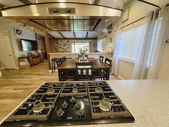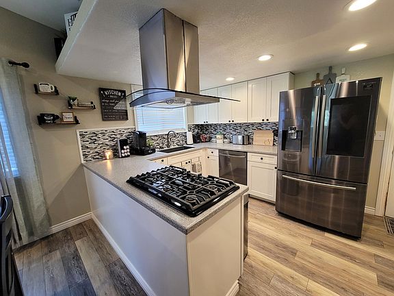 Beautiful renovations, custom upgrades, welcoming appearance and a large backyard! Priced at $325,000 with eye catching characteristics!Love the kitchen! White soft close cabinets with corian countertops, tiled backsplash, new appliances, large undermount black sink with stainless steel faucet and the floating range hood! The way it opens up to the dining and living room makes it perfect for entertaining.Large custom sitting breakfast bar with stained finsh. Living room features high ceilings with beams, a wood stove & enough room for a lrg sectional.Upgrades include waterproof market core laminate flooring, canned lighting, bathroom vanities, new blinds, doors and garage door! Don't stop your entertaining inside! Fabulous covered patio, multi level yard, gate to creek and RV Parki