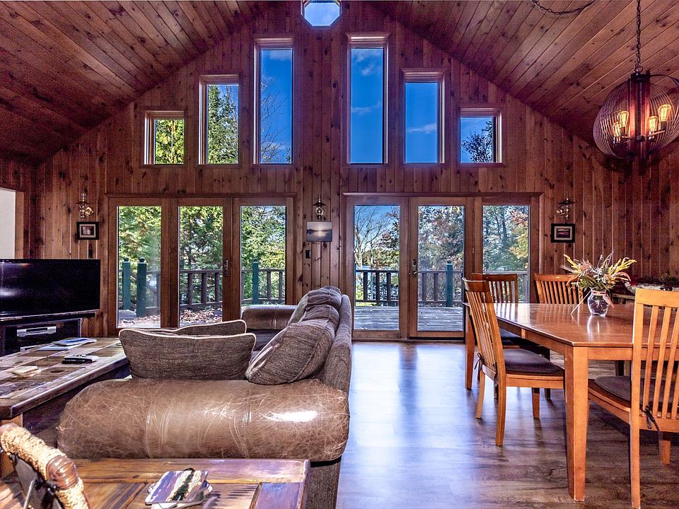 Detached three car garageBeautiful sand frontageVaulted ceilingsWood burning fireplaceWooden deckOpen conceptLarge recreation area