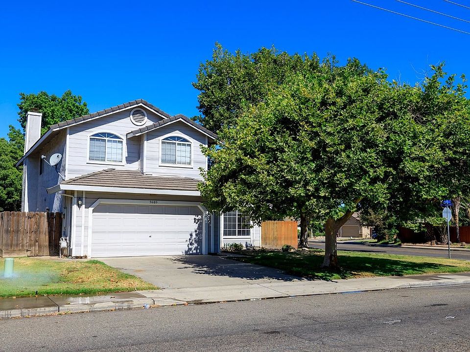 A clean 4 bedroom 2 1/2 bath home with a cozy fireplace in the master bedroom/bathroom. On a corner lot with great backyard space and just a short walk to Stanislaus State University. The 2 car garage features nice floor to ceiling cabinets for extra storage. Make this wonderful home yours today.