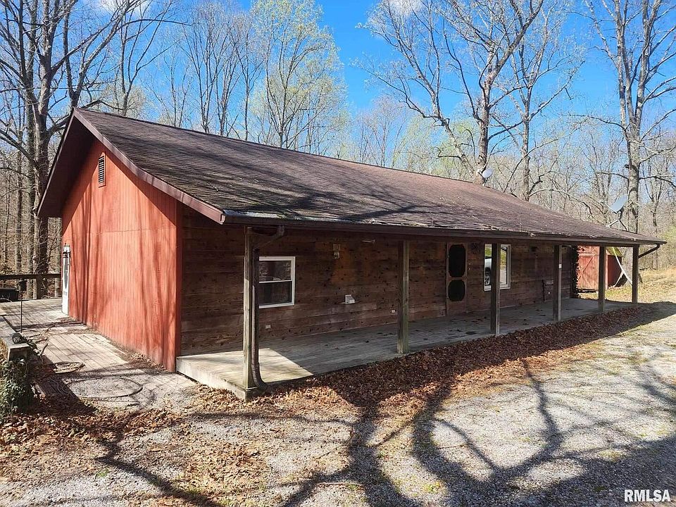 Check out this great home! .. Perfect retreat with 5 acres. The home has an open floor-plan with wood-burner/fireplace .. Large, covered deck overlooks the property. in the middle of Shawnee Forest. Property adjoins public land that leads to Little Grassy Lake.