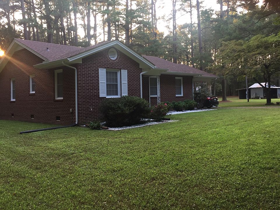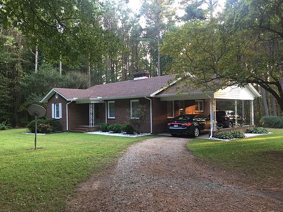 Towering pines set the tone for this rural, tranquil setting for this well-maintained brick ranch home on 2.7 acres. 1358 sq ft home features 2 bedrooms, 2 baths, combination living/dining room, eat-in kitchen/den and utility room plus a 1-car attached carport. Property has 2 storage sheds with electric service...providing extra coverage for a vehicle and closed storage. Home has double-hung Nuweld II replacement windows, furnace and a/c were replaced in 2010, hall bath updated in 2010, new roof in 2015, vinyl siding added in 2016 and new water heater in 2017. Hardwood floors are underneath carpet in living/dining room and hall and in both bedrooms. There are two wells on the property...one for the home (new in 2011) and one for the garden. Great location with access to I-85 and Highway 1. Shower in 2nd bath will need replacing but otherwise home is in great condition. A little bit of updating will go a long way to making this your new home. Home is sold in as-is condition and is priced accordingly. One of the owners is a licensed real estate agent in IL.