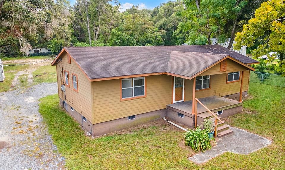 Country Living at Its Best! Welcome to this spacious 3-bedroom, 2-bath home on nearly one acre in charming Dade City. Recently refreshed inside and out, this home offers easy-care tile in the bathrooms, cozy carpet and durable laminate in the main living areas, ceiling fans throughout, and charming wainscoting accents in the living room. This home also has a bonus room that can be used for an office, den, etc. Relax with your morning coffee on the inviting front porch or spend evenings in the peaceful backyard with a covered porch and large metal storage building. The oversized lot is a rare find, providing endless opportunities—create an outdoor entertaining space, start a garden, add a workshop, or simply enjoy room for pets and play. Nestled in a quiet setting just minutes from town, this move-in ready home combines the serenity of country living with the convenience of nearby shopping, dining, and schools. Priced to sell—don’t miss this affordable opportunity!