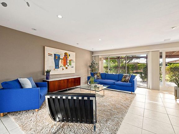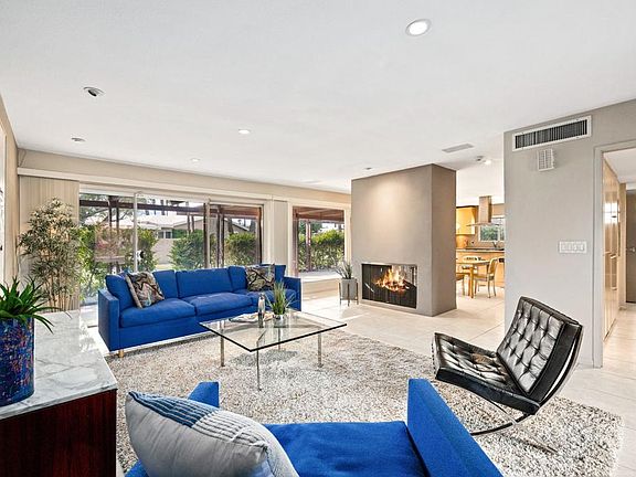 Find yourself at home in this beautifully kept 1960's Mid-Century modern residence nestled in the Tamarisk Rancho community. Made up of 16 historically designated properties, you will be wowed by the magnificent date palms that fill the skyline, the meticulous kept grounds and mountain views that can be seen from the centrally located community pool. This 4 bedroom, 3 bath home has an open kitchen connected to the living room through it's double sided gas fire place and floor to ceiling windows/sliders. It features an extra large room that can be used as a guest quarters with it's own entry and private patio. With over 2,000 sq feet on a large corner lot, it really is a must see to appreciate.