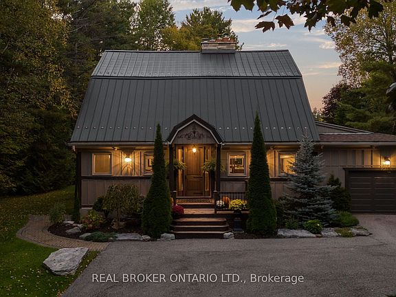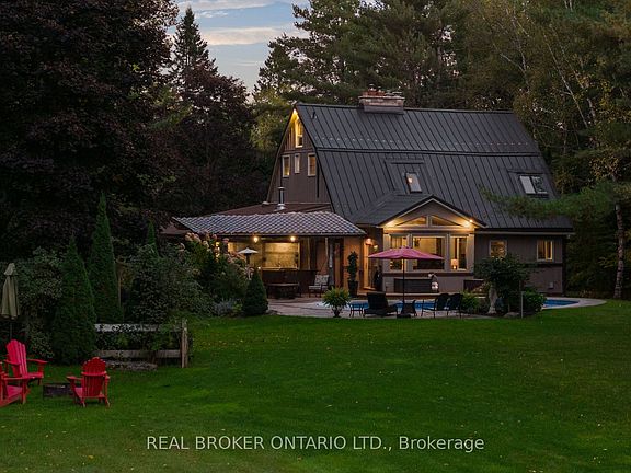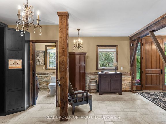 Discover a one-of-a-kind Barndominium that is a perfect blend of timeless luxury and rustic character. Nestled within a lush, tree-lined sanctuary, this property boasts 3.88 acres of meticulously maintained grounds, complete with circular driveway and attached garage. Relax outside in the in-ground heated pool, featuring a 9-foot deep end, accompanied by a rejuvenating hot tub. Entertain effortlessly in the full outdoor kitchen, situated under a striking barn beam enclosure, equipped with premium amenities including a Lynx double pro searer, outdoor fridge, quartz countertops, and a restaurant-quality stainless steel island cabinet. Spanning over 4,300 square feet, the residence showcases exquisite high-end finishes and original barn elements. The refinished wide-plank floors harmonize with limestone and porcelain tiles throughout the main floor. The chefs kitchen is outfitted with granite counters, top-tier Wolf appliances including 6 burner gas stove, warming drawer, in-counter deep fryer and steamer and Sub-Zero refrigerator and freezer. The four-season Muskoka room, complete with in-floor heating, serves as a tranquil retreat year-round. The primary suite offers engineered hardwood flooring, a spacious walk-in closet, and breathtaking 5-piece ensuite with extraordinary stonework, soaker tub and walk-in shower. Two additional hayloft bedrooms share a beautiful 4-piece bathroom, while a large finished loft presents endless possibilities as an extra bedroom, play room, or hobby room. The fully finished basement with garage access, features a wet bar and rec area with wood burning fireplace and full bathroom with a unique stone shower and laundry. Geothermal heating and cooling ensures energy efficiency throughout. Completing this remarkable offering is a versatile 30x20 barn equipped with water and hydro. With unlimited character and unparalleled privacy, this extraordinary Barndominium invites you to experience luxurious country living like never before.
